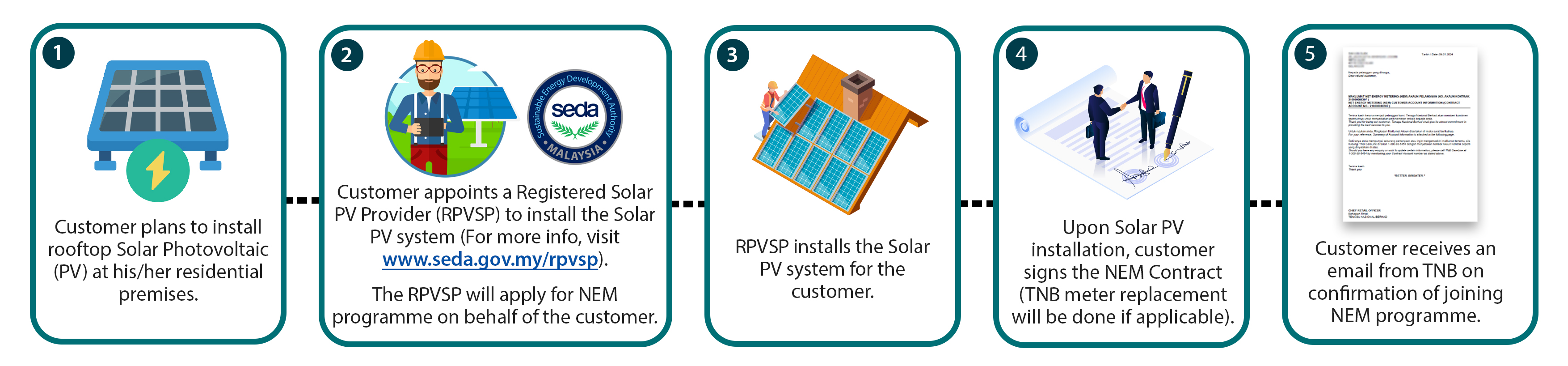 - • Successful first-time NEM Rakyat applicants from 1 April 2024 onwards (Customers with prior NEM approvals are not eligible)